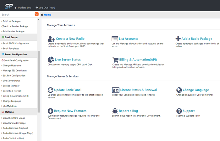 SONIC PANEL este cel mai popular si performant control panel in domeniul Shoutcast, este panoul de administrare care va permite sa va administrati radio prin intermediul unei interfete web grafice.